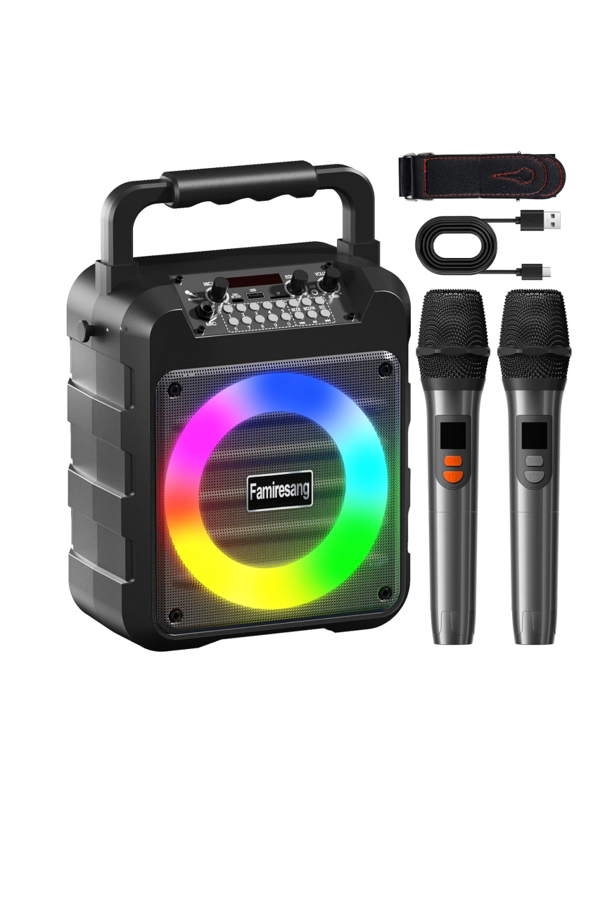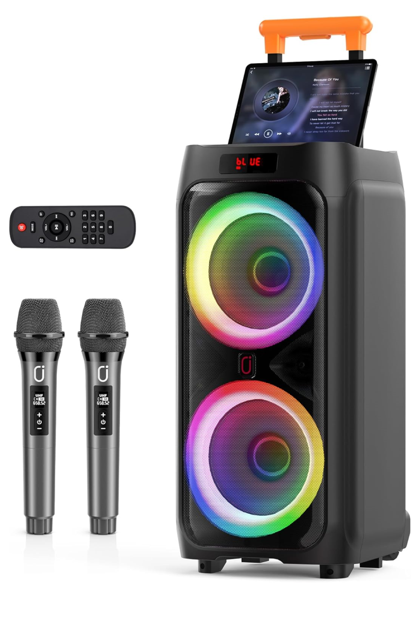 JYX Karaoke Machine with 2 Wireless Microphones for Adults, 8″ Big Bluetooth Party Speaker with 500W Peak Power, PA System with LED Disco Light, Rolling Wheels and Trolley, Perfect for Outdoor Home