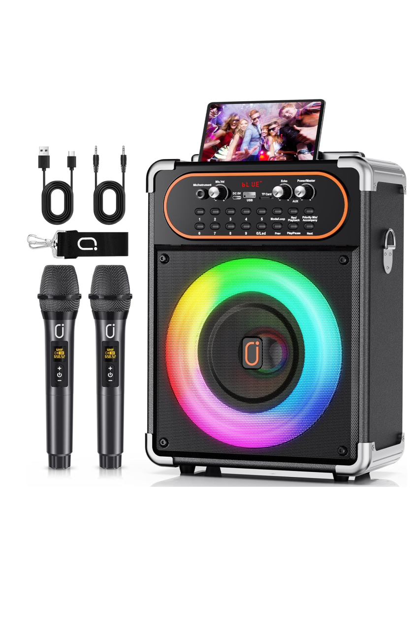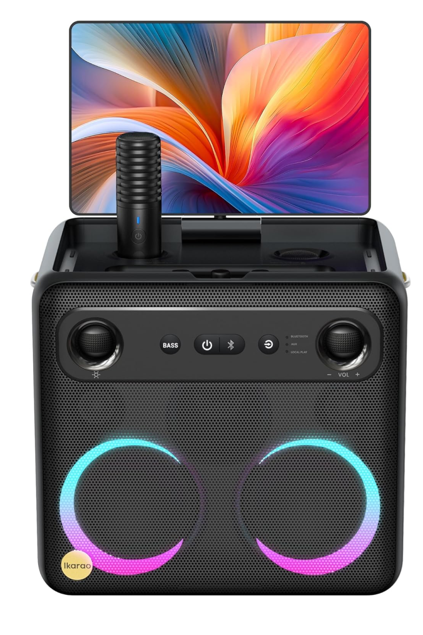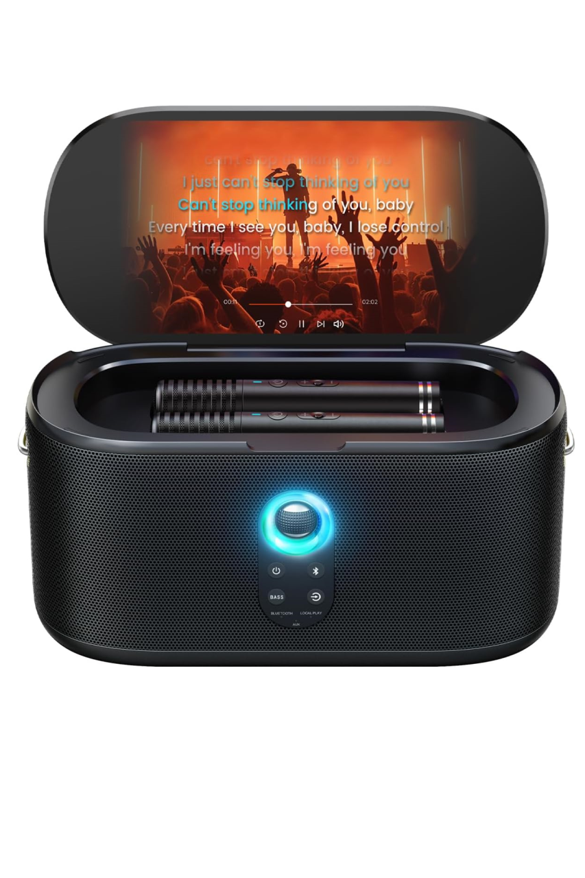 Smart Karaoke Machine for Adults – with Lyrics Display, 64GB Karaoke Tablet, 2 Wireless Mics, Professional Karaoke System, 300W Peak Power, 4 DJ Lights, Karaoke Speaker for Any Occasion