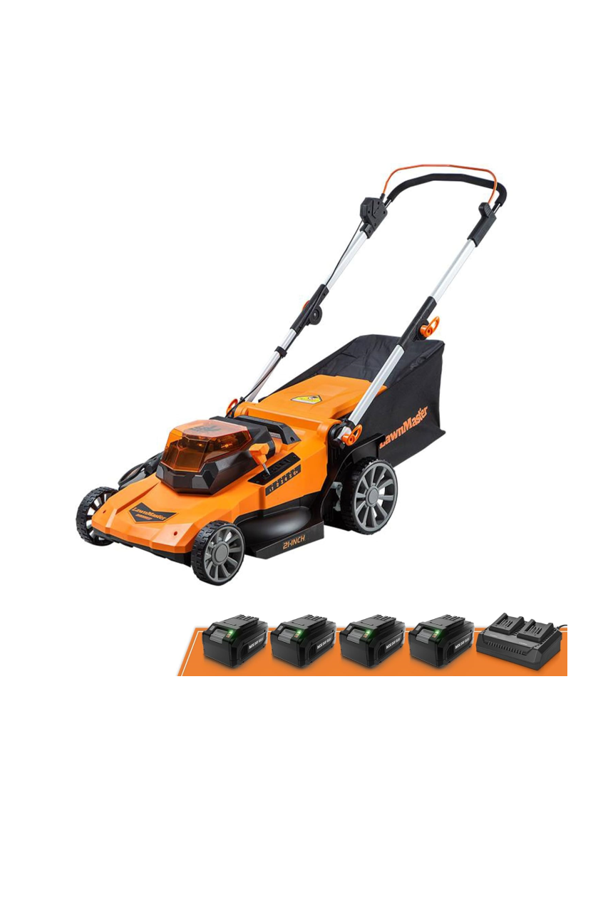 LawnMaster CLMF4821A Cordless Lawn Mower Brushless 48V MAX* 21Inch 3-in-1 Function Up to 1/2 Acre with 4X24V MAX* 4.0Ah Battery and a Dual Charger